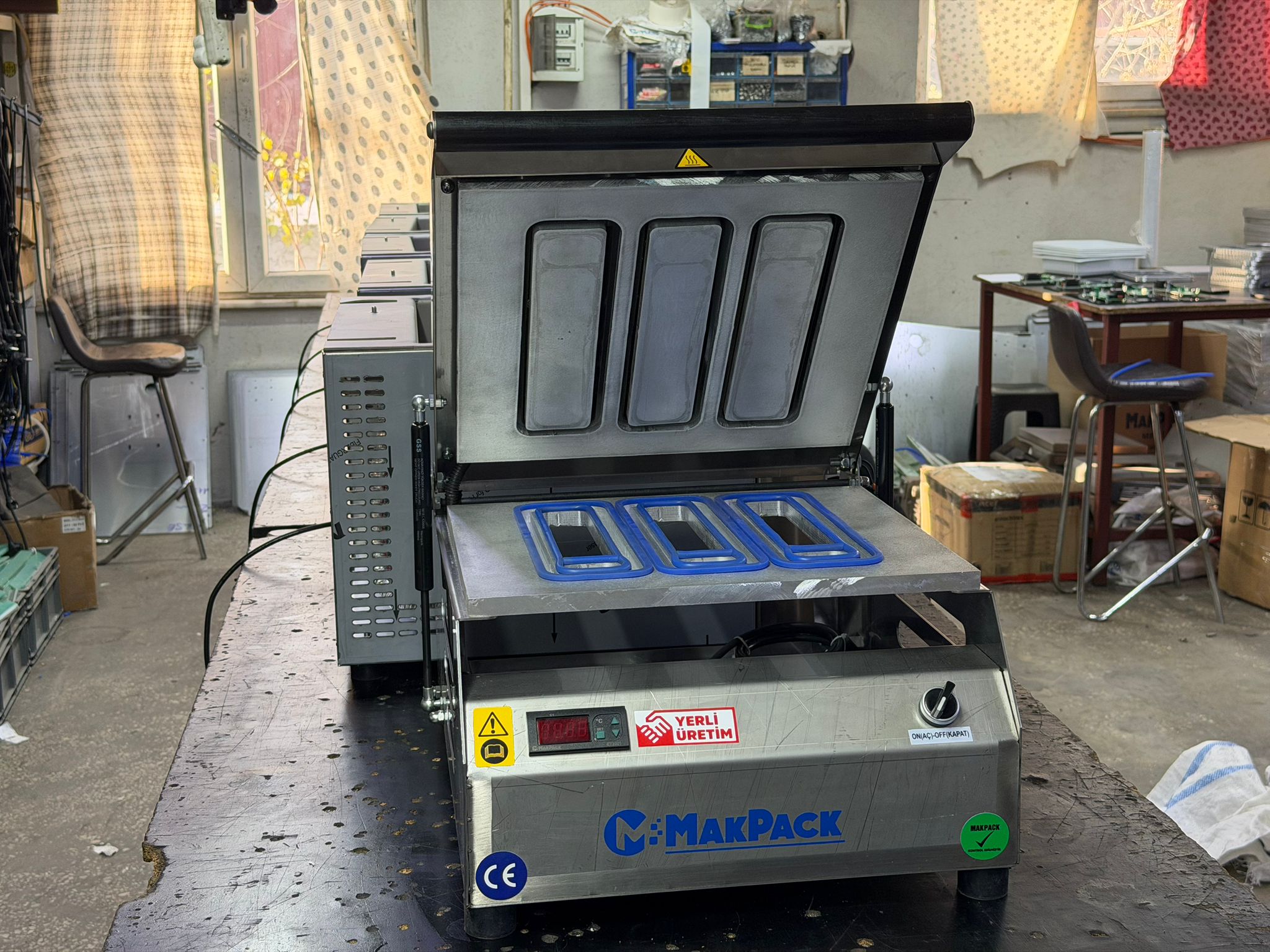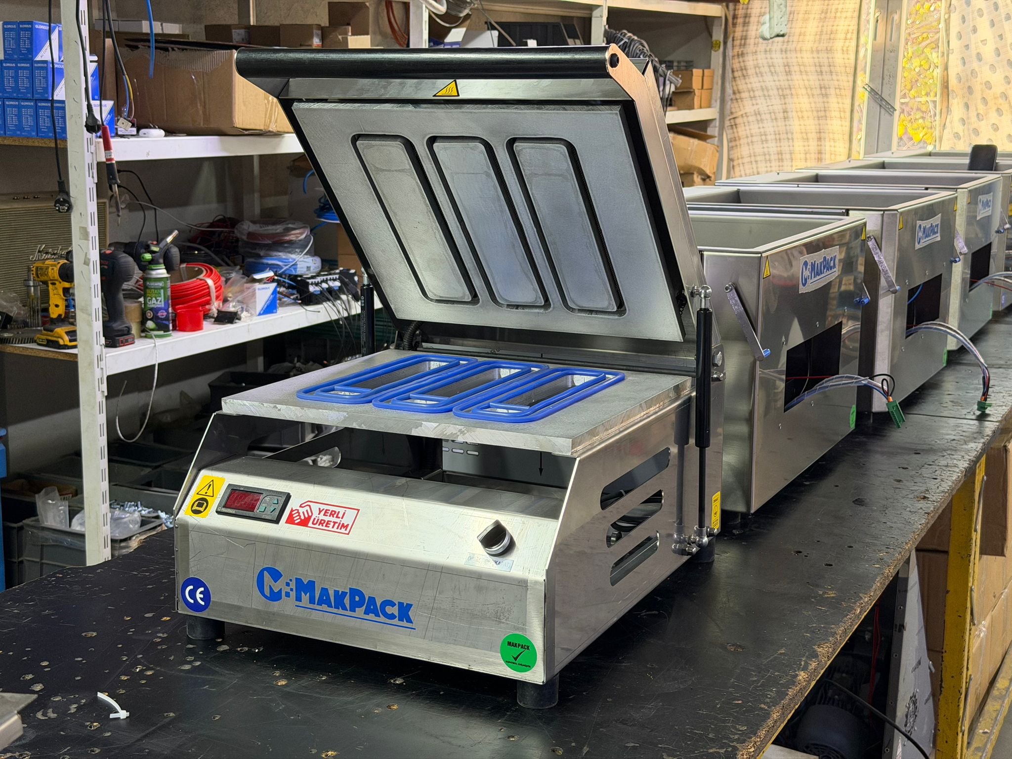 Ayrıca, Soğan Doğrama Makinesi gibi özel ekipmanlar; restaurant, kebapçı veya catering işletmeleri için zaman kazandıran, üretim verimliliğini artıran araçlardır. Paketleme makineleriyle entegre olarak çalışan MakPack Vakum Makineleri, yüksek hacimli vakumlama işlemlerinde işletmenizin kapasitesini büyütür. Shrink paketleme çözümlerine ihtiyaç duyan tesisler içinse Shrink Paketleme Makineleri, dayanıklı ve estetik ambalaj çözümleri sunar. Kahve dükkanları, oteller veya küçük yiyecek işletmeleri için eğlenceli ve faydalı bir kategori olan Waffle Makineleri, menünüzü genişletmenize yardımcı olabilir.
