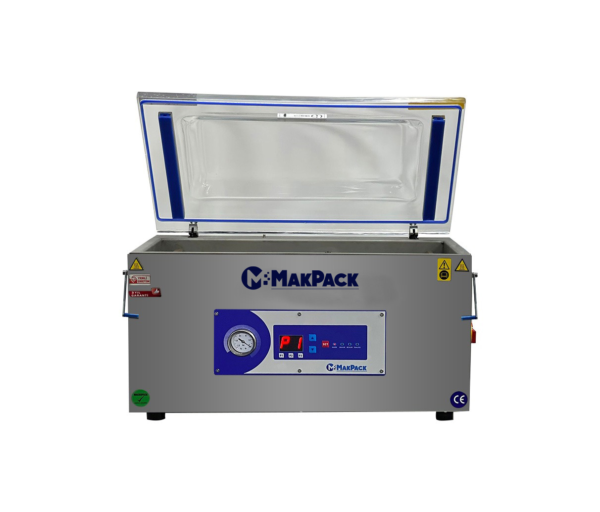 Vakum Makinemiz set üstü vakum paketleme makinesidir. Makine ölçüleri 510*760*450 h mm ve iç hazne ölçüsü 350x600x85 h mm’dir. Pompa kapasitesi 21 m³’dür. İki adet 350 mm yapıştırma çenesine sahiptir. Vakumlama işlem süresi 20-30 saniye arasındadır.