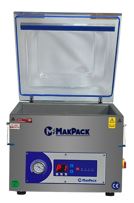Makina Kapagını kapattıgınızda otomatik olarak çalışmaya başlar ve sırası ile iç havanın boşaltılmasını yapıştırma ve havanın alınma işlemlerini uygular. Bu sayede paketlenmiş ürünler paslanmaz erime rutubet koku gibi zararlı dış etkenlerden korunmuş olur ve ürününüzün raf ömrünü uzartır.